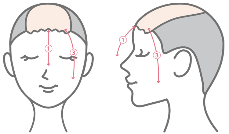 ・カートページ内下部「顔周りカットサービスご希望の場合は入力してください」の欄に、①と③の長さをご記入ください。